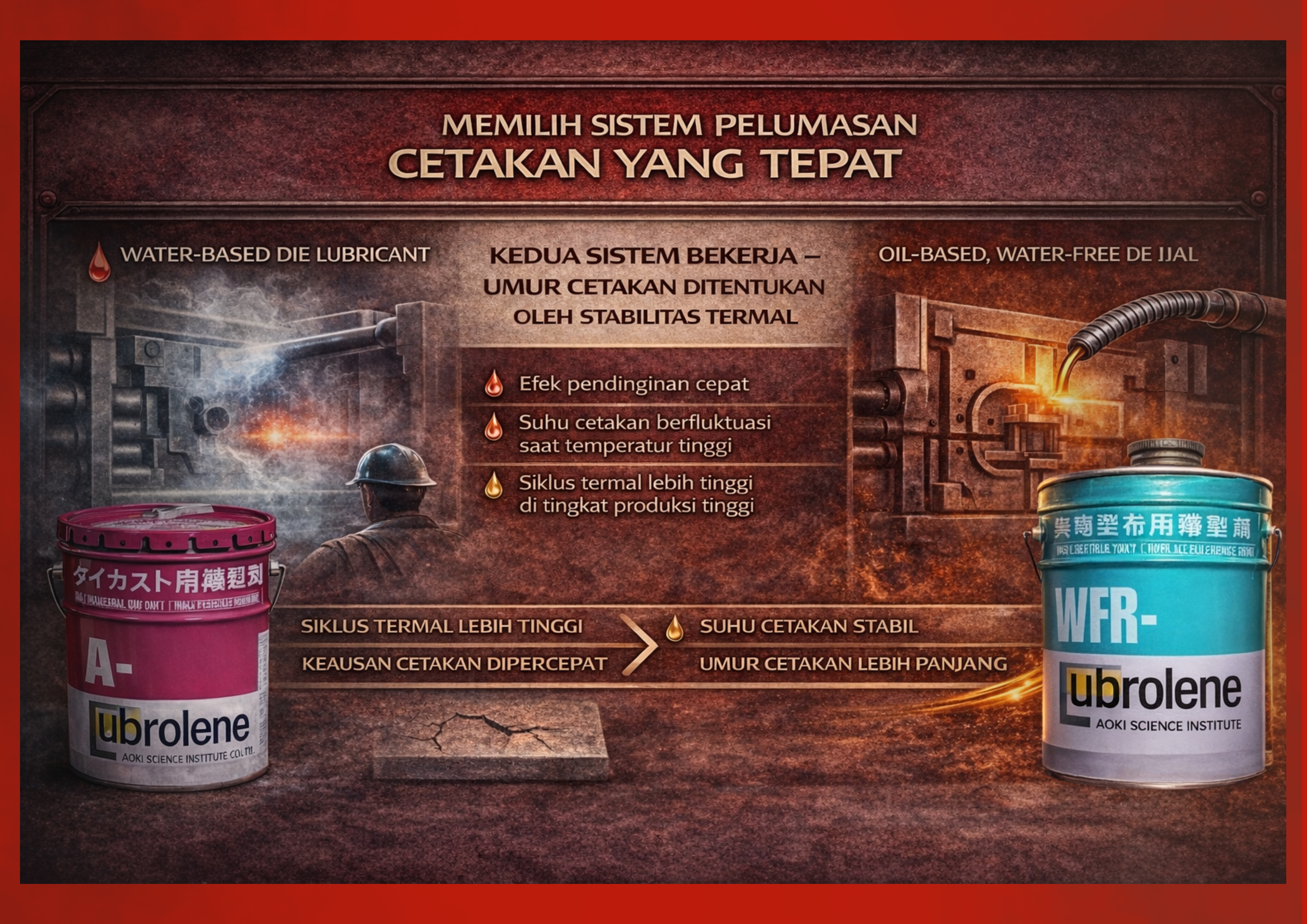 Umur cetakan (die life) merupakan salah satu faktor biaya terbesar dalam operasi die-casting aluminium. Namun, banyak foundry masih mengalami keretakan cetakan dini, heat checking, dan kerusakan permukaan, sering kali tanpa menyadari bahwa akar permasalahannya bisa berasal dari sistem die lubricants yang digunakan.